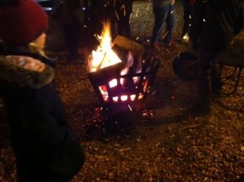 Sie spielten dann wirklich kurz mit den anderen Kindern, aber alle fünf Meter stand auf diesem Weihnachtsmarkt eine kleine offene Feuerstelle und so, wie sie sich gegenseitig schubsten und jagten, konnten wir uns dann auch nicht mehr in Ruhe unterhalten.