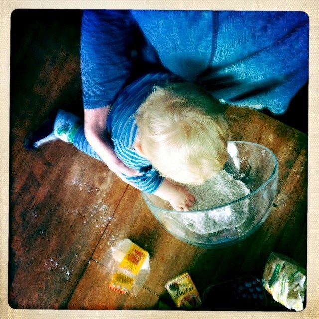 da wollte ich zu meinem Versprechen stehen und einen Post darüber schreiben wie ich mit meinem 10 Monate alten Sohn Max einen Kuchen backe – und da hatte ich den Salat…äh…naja…Teig.