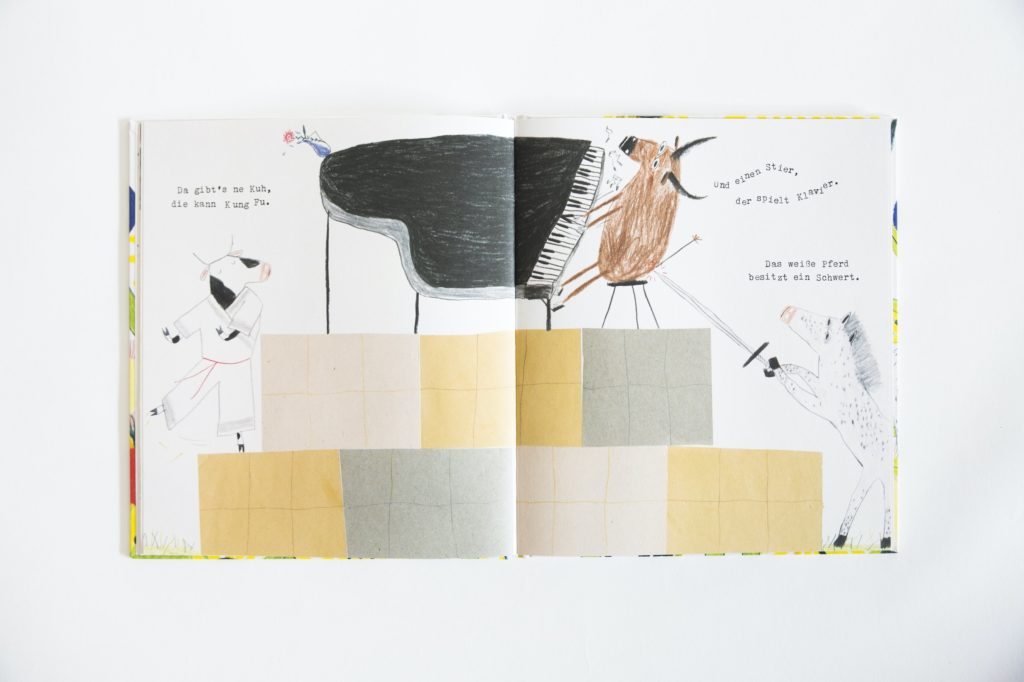 Als ich mit der Arbeit an dem Gedicht anfing, hab ich zuerst gar nicht an eine größere Aussage gedacht. Es sollte Spaß machen und Worte zu reimen, die erst mal nicht so recht zusammenpassen, macht total Spaß. Da hat die Katze eben eine Glatze und die Kuh kann da Kung-Fu. Erst als ich mit dem ersten Draft fertig war, hab ich gemerkt, was mein Herz ausdrücken will.