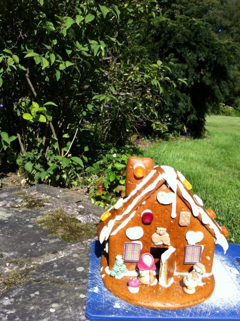 Naja. Meine Tochter war jedenfalls unglaublich begeistert von der Weihnachtsecke im Supermarkt. Die innere Uhr tickt da wohl noch nicht so ganz vernünftig und tja, was soll ich sagen. Ich hab halt manchmal so Tage, da kann ich schlecht Nein sagen und… ach, ich wollte ja auch nicht schon wieder an der Kasse über die Vor- und Nachteile von rosa Kaugummis diskutieren und dachte, man könnte am Wochenende ja mal n Stündchen basteln, warum das also der Tochter nicht den Traum vom winterlichen Hexenhaus erfüllen, auch wenn das Thermometer draußen eben 26 schwüle Gewittergrade anzeigt… Lange Rede, kurzer Sinn.