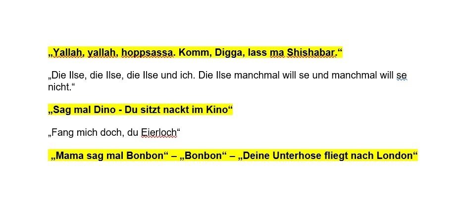 „Yallah, yallah, hoppsassa. Komm, Digga, lass ma Shishabar.“