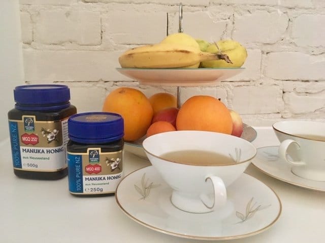 Bei Erkältungen und Kratzen im Hals setzen wir immer Zwiebelsaft an – hilft auch super, manchmal auch noch mit Ingwer dazu. Salbeihonig mit Salbei aus dem eigenen Garten ist auch jeden Winter ein muss. Den Manuka Honig würde ich gerne mal als Alternative ausprobieren und mich überzeugen lassen 😉