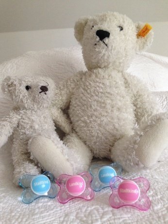 Huhu 🙂 auch von mir nochmal vielen, lieben Dank! Emil hat sich sehr gefreut über das kleine Päckchen mit den zwei grauen StadtKindSchnullern. Sie mussten direkt mit in den Koffer für sein Oma-Opa-Wochenende 😉