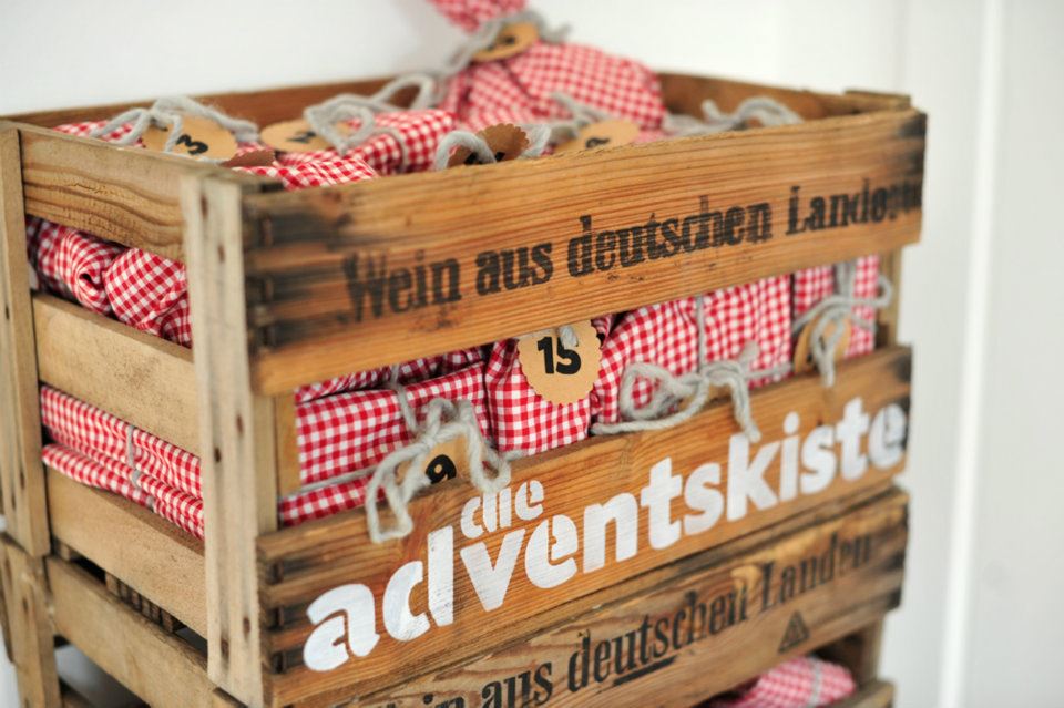 Eine Adventskiste ist ein Adventskalender. 24 liebevoll in rotem Karo-Stoff eingepackte Tütchen, mit Wolle zugeknotet, Nummernschildern versehen, in einer alten Weinkiste… und ja, ihr ahnt es, es sieht aus wie selbstgemacht!