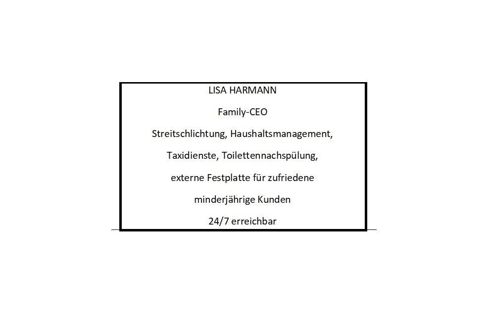 Ja, verdammt, jede Mutter könnte sich eine Visitenkarte wie die da oben drucken lassen. Jede Mutter ist eine "Working Mom", egal ob sie damit Geld verdient oder nicht. Und nein, eine Mutter schmeißt nicht ihre ganze Ausbildung weg, wenn sie eine Zeitlang bei den Kindern bleibt.