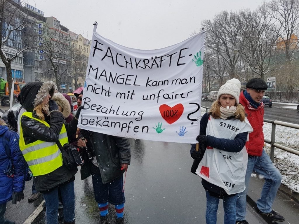 Schon seit langem kämpfen unsere Erzieher für gerechtere Löhne. Gestern hat Verdi die Erzieher der Berliner Arbeiterwohlfahrt zum Streik aufgerufen. Sie fordern faire Gehälter und die Anpassung der AWO-Gehälter an den Tarifvertrag der Länder bzw. in diesem Schritt 95% des Tarifs. Momentan verdienen unsere Erzieher bis zu 500 € weniger als Erzieher, die nach Tarif bezahlt werden.