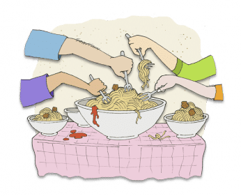 Tja, also wenn ich ehrlich bin… wir sind relativ wenig ritualisierte Menschen, das waren wir auch schon vor den Kindern. In der Woche schaffen wir es tatsächlich oft nicht gemeinsam zu frühstücken. Da isst die Tochter schon, während ich den Söhnen beim Anziehen helfe. Am Wochenende kommt es aber schon mal vor, dass wir gemeinsam frühstücken… würden die Kids nicht dauernd aufstehen und schon mal spielen MÜSSEN 😉