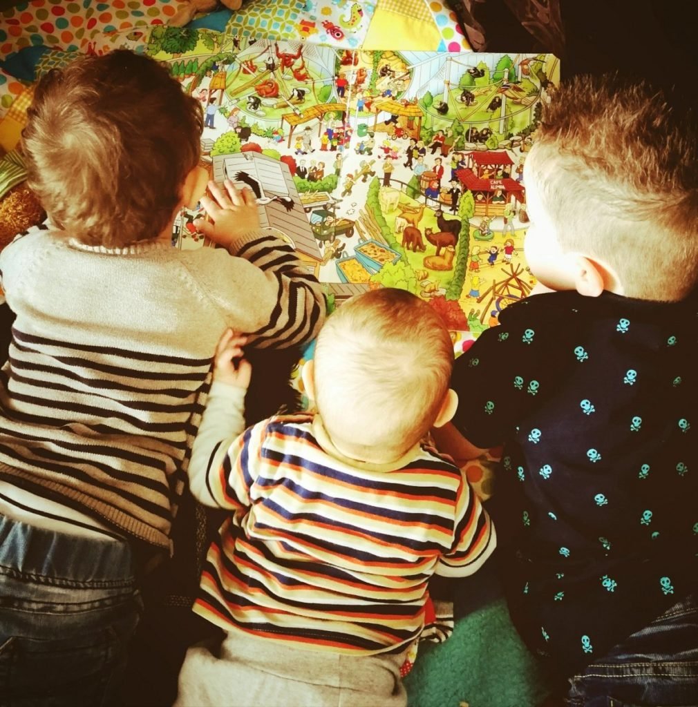 Die Umstellung von "Wir sind vier" auf "Ab jetzt Großfamilie" klappt besser, als befürchtet. Die großen Geschwister – zum Zeitpunkt der Geburt auch erst 17Monate und drei Jahre – lieben den Kleinen über alles und küssen ihn und kuscheln mit ihm, wo es nur geht.
