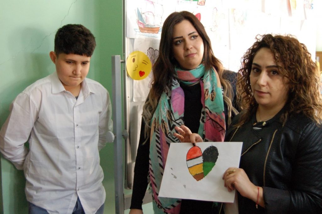 Anschließend floh die Familie nach Jordanien. Regelmäßig besucht Ordwan seitdem ein Beratungszentrum der Caritas Jordanien im Stadtteil Hashmi. Dort leben besonders viele irakische Flüchtlinge. Ordwan nimmt einmal in der Woche an einer Therapiesitzung teil. Als ich ihn treffe, hat er gerade ein Herz ausgemalt (siehe Foto). Sofia Nafaa, die das psychosoziale Angebot koordiniert, bittet ihn, die Farben zu deuten.