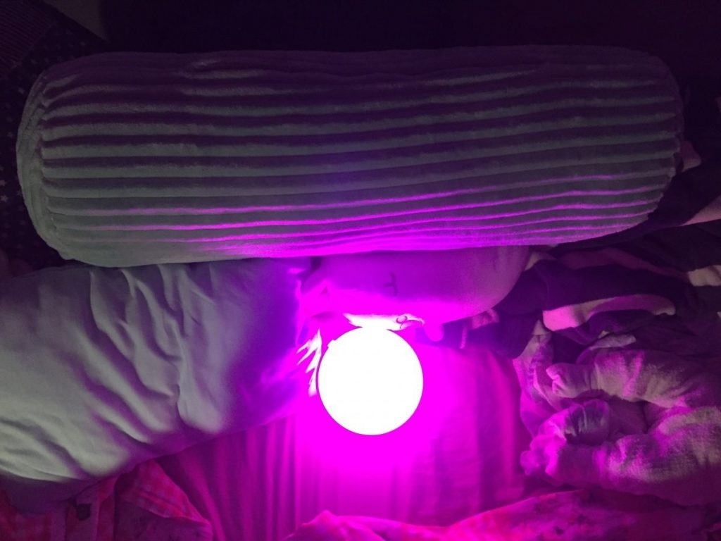 Da gibt es jetzt also bei uns diesen kleinen süßen Halbmond, der immer mal wieder wie von Geisterhand in die Kinderzimmer verschwindet, weil er halt kabellos und tragbar ist – und so beliebt. Und weil sie nicht wissen, wie man die Philips Hue Go richtig ausspricht, heißt sie bei uns einfach die Wohlfühl-Lampe. Hat die eigentlich jemand gesehen? Ah ja, im Kissen-Kuschelparadies der Großen leuchtet es ja grad mal wieder so schön lila… praktisch, dass sie sich auch gleich die App dazu runtergeladen hat, um die LED-Lampe darüber zu steuern.