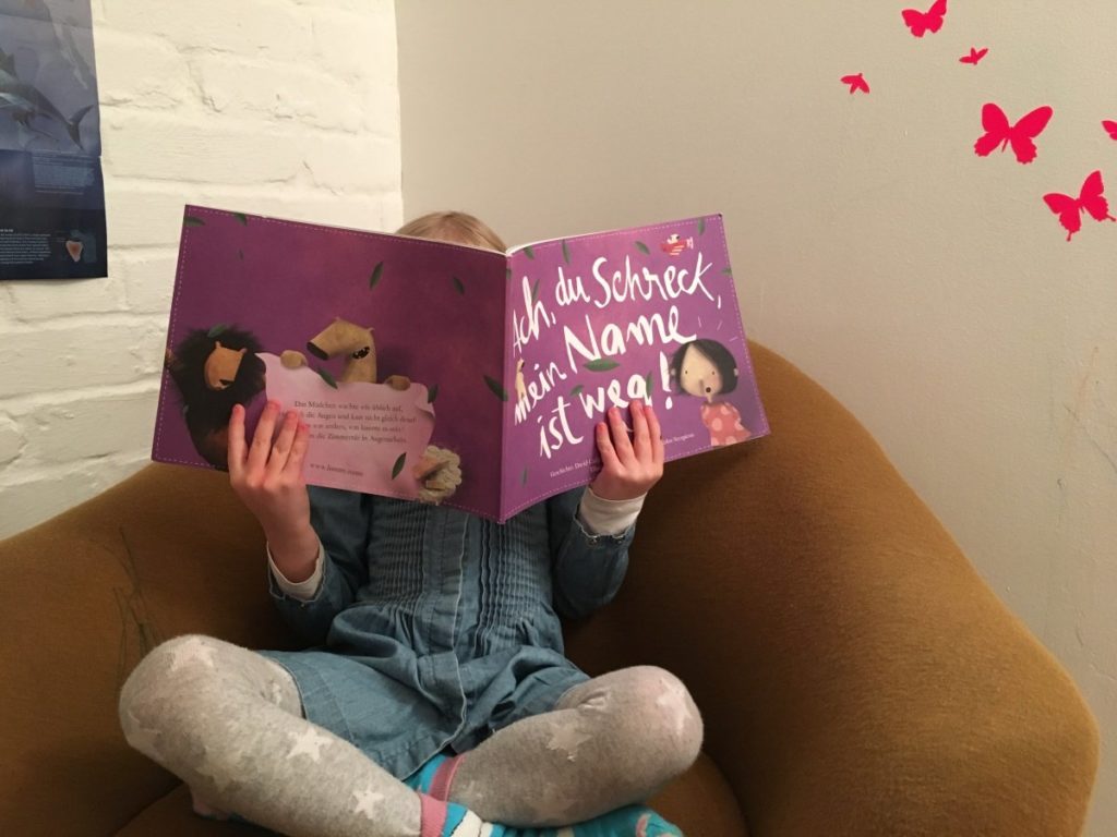 Wir haben das wunderbare Buch „Ach, Du Schreck, mein Name ist weg“ bestellt, das ich wirklich allen Familien wärmstens empfehlen kann.