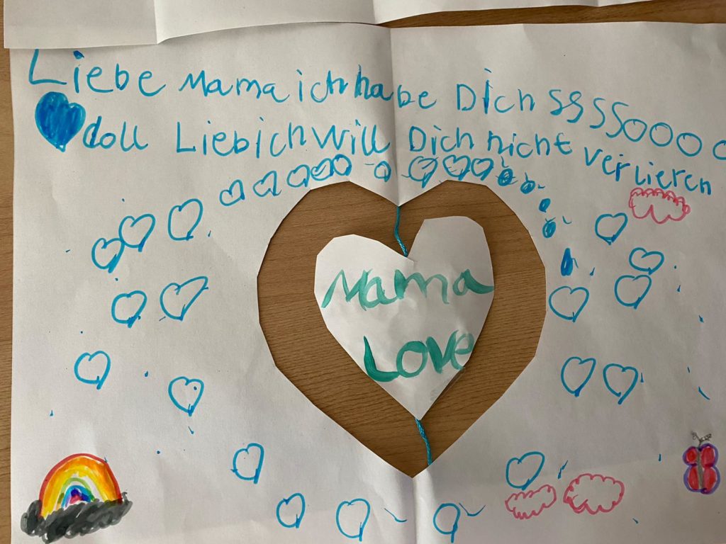 Neele weiß, dass auch ihre Oma, meine Mutter, früh an Brustkrebs gestorben ist. Da war ich 18 Jahre alt. Sie malt mir täglich Bilder mit Botschaften, dass sie mich nicht verlieren möchte. Sie selbst musste nach einem im MRT auffälligeren Befund in ihrem Unterschenkel (ein Bereich hatte Kontrastmittel aufgenommen) erneut letzten Freitag zur Sonographie- Kontrolle, wo sich die Läsion aber zum Glück nicht mehr darstellen ließ.