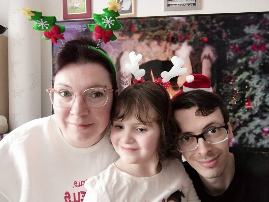 Wir haben uns über eine Facebook-Gruppe kennengelernt und er wusste schon vor dem ersten Date von meinem besonderen Mädchen. Unser erstes Treffen war ein Spaziergang mit Nara in Dresden bei kaltem Wind und Regenwetter. Nach dem dritten Date haben wir ihn nicht mehr gehen lassen, er ist direkt bei uns eingezogen und wurde von Nara zum Papa erklärt.