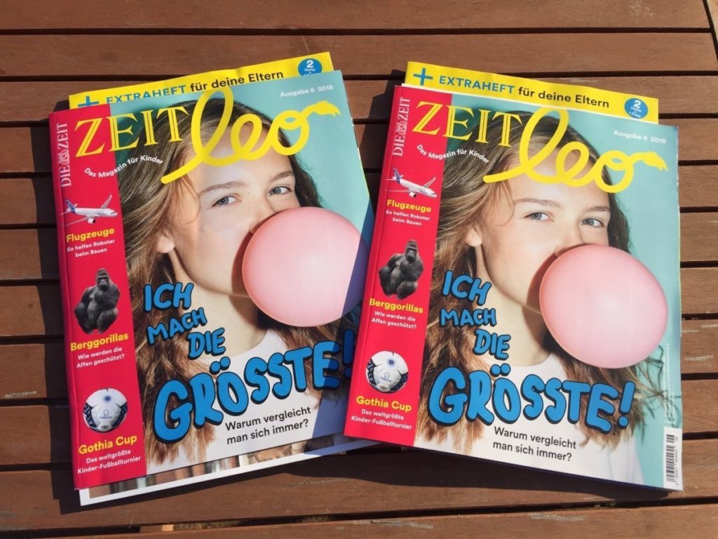 Die Zeiten, in denen Zeitschriften nach dem Plastik-Gimmick auf der Titelseite ausgesucht wurden, sind bei uns zum Glück vorbei. Jetzt geht es hier langsam um Inhalte. Und deswegen haben wir jetzt zum Beispiel auch ZEIT Leo bei uns zu Hause. Kennt ihr die Zeitschrift?