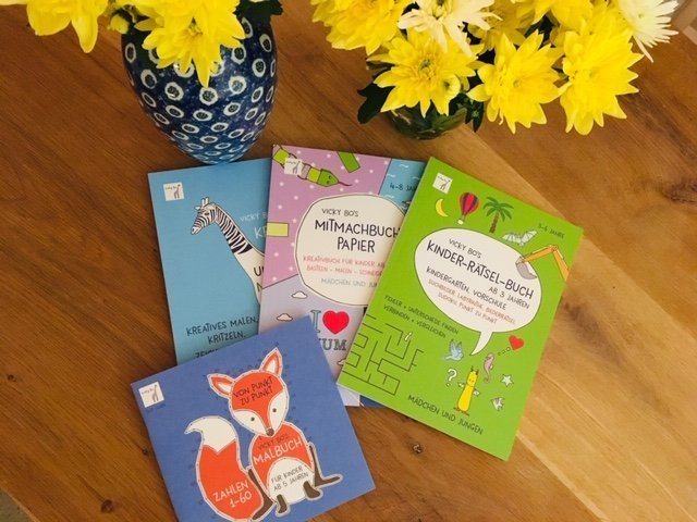 Wir würden uns sehr über folgende Bücher folgen: Von Punkt zu Punkt. Vicky Bo’s Malbuch für Kinder ab 5 Jahren – Zahlen 1-60. Erstes Malen, Zeichnen und Kritzeln nach Punkten, Die ABC-Bande! Vicky Bo’s lustiges Buchstaben-Bilderbuch und Vicky Bo’s Malbuch für Kinder ab 2 Jahren – Weihnachten